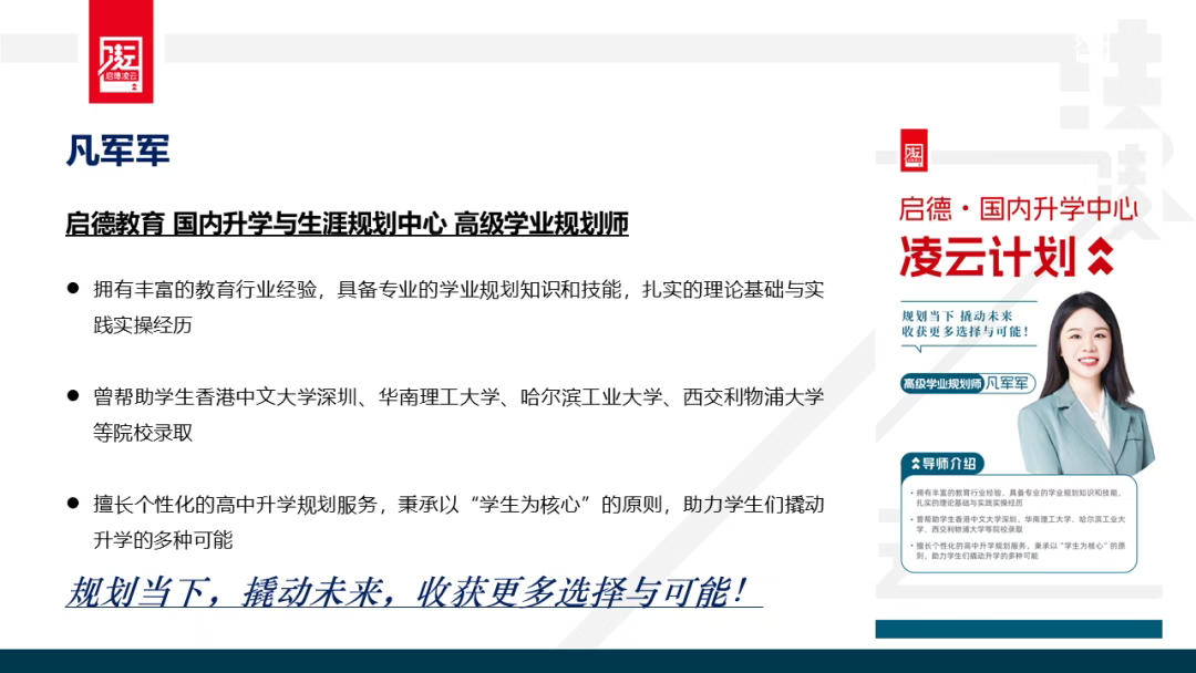 一位“不一样”的学业规划师初遇在凡老师看来,升学规划从来不是“帮学生拿结果”这么简单——高中三年,学生要面对普通高考、综合评价、强基计划等多条路径,更要在“考什么大学、选什么专业”的迷茫中找到方向。