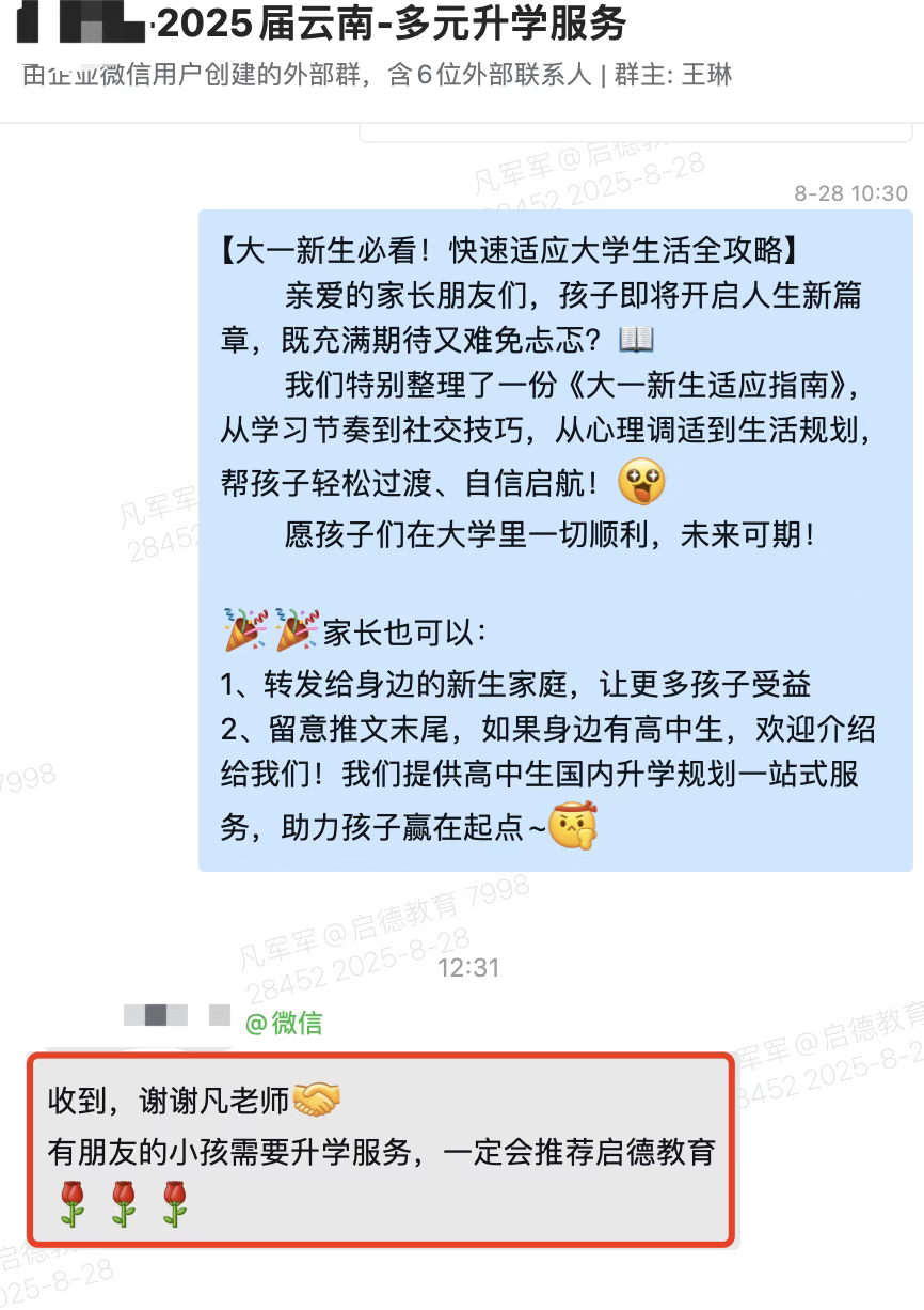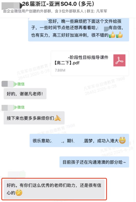 对学生:是“拨开迷雾”。很多孩子只知道“要考大学”,却不知道“为什么考、考哪里”。凡老师会通过深度沟通和专业测评,把孩子模糊的“梦想”变成清晰的 “目标”,让学习从此有了“劲头”;对家长:是“缓解焦虑”。高考从不是孩子一个人的事,家长往往比孩子更慌。凡老师就像一个“科学外脑”,用自己的专业知识和过往经验告诉家长:“这件事有明白人管着”,让他们悬着的心真正落地。