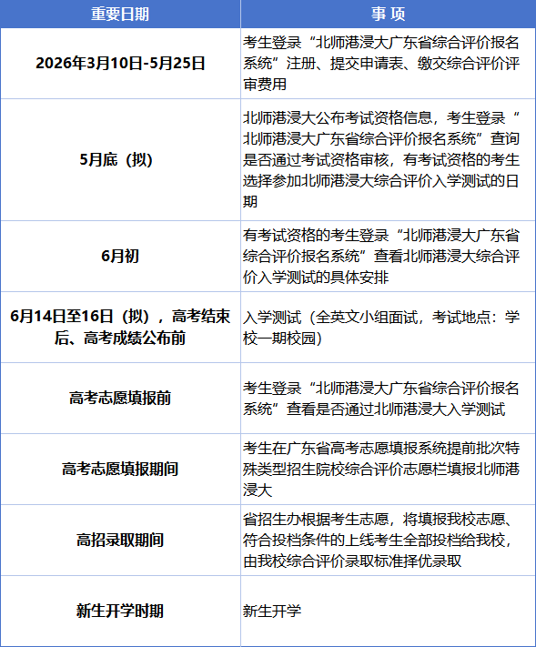 九、2026年北师港浸大广东省综合评价录取重要日程