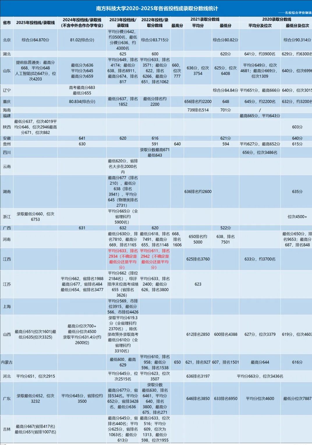 南方科技大学综合评价录取标准