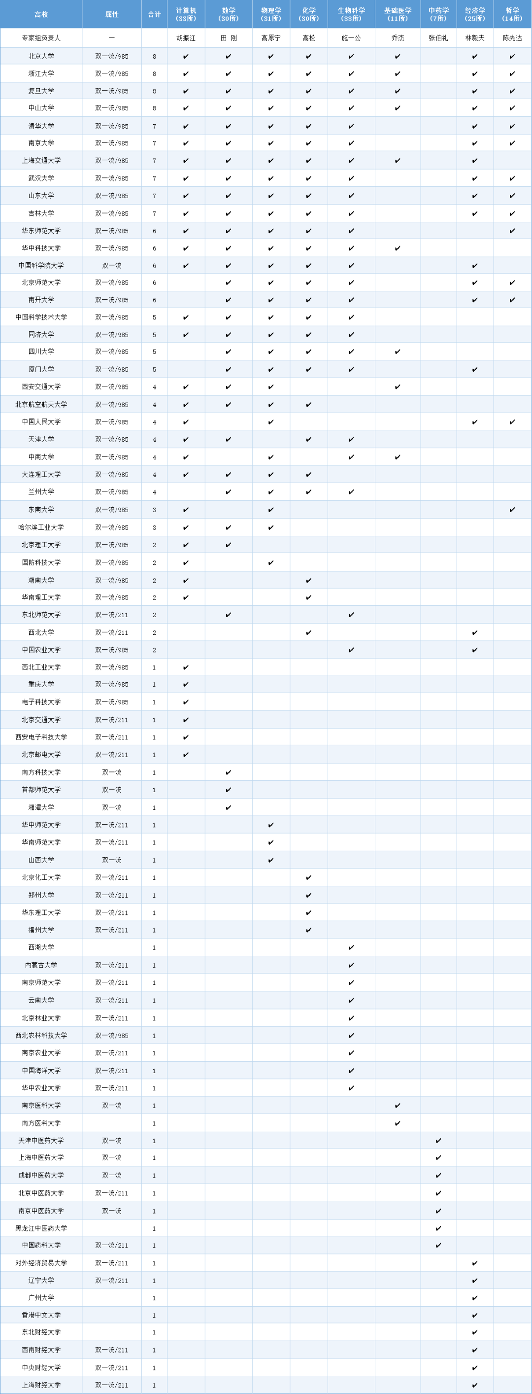 此外,清华大学、上海交通大学也有 10 个及以上学科入选,作为工科强校,清华在集成电路、人工智能领域牵头,上交在生物科学、力学领域突破,在 “应用导向” 学科中持续领跑。