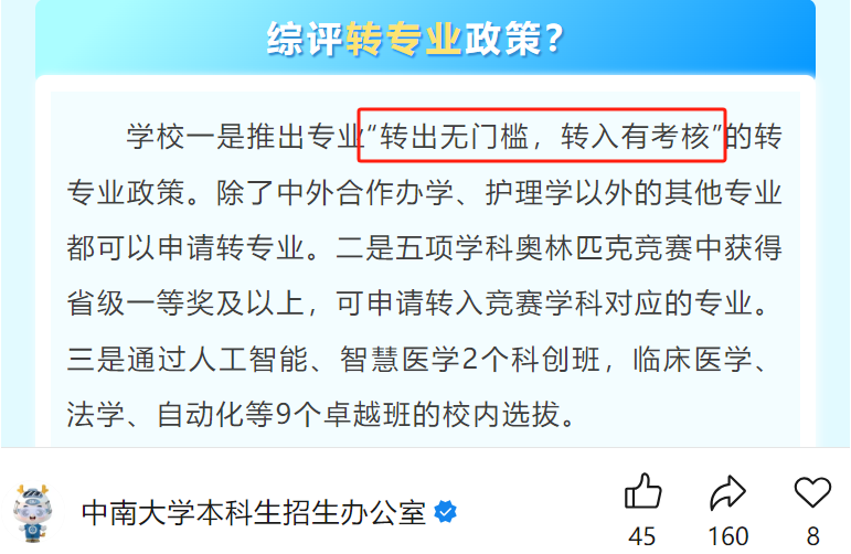 答:综合评价大多对转专业没有限制,只要符合转专业要求即可转。各校各专业要求可能会不一样,建议报考前先咨询一下招生办。